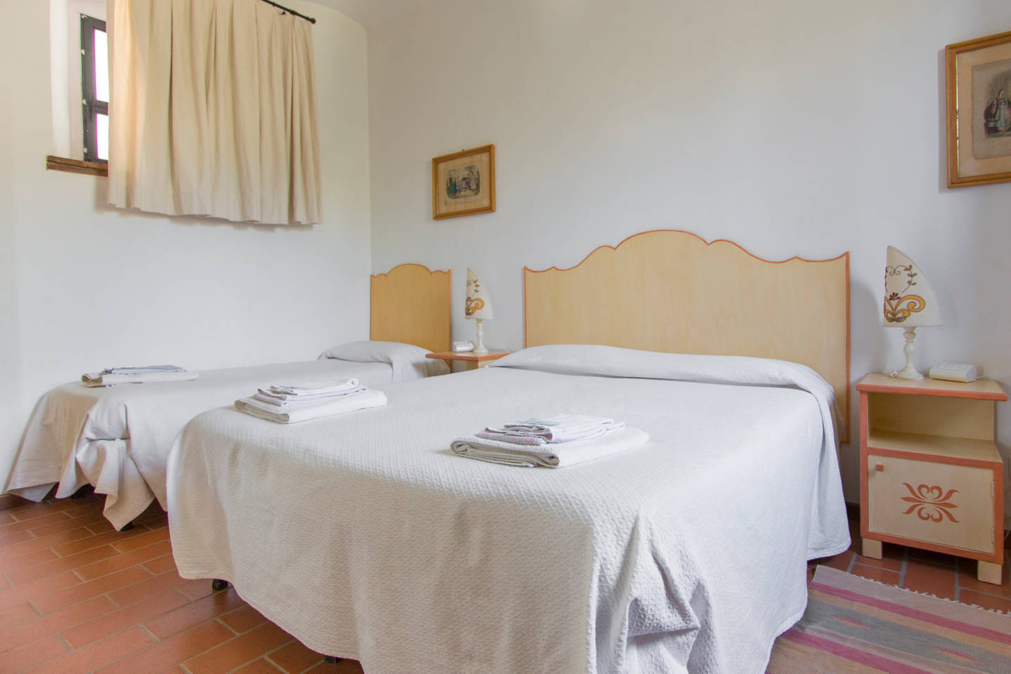50 mq. 2/3 Persone, accessibile ai diversamente abiliIngresso / soggiorno con divano letto / con angolo cottura, 1 camera matrimoniale o doppia + 1 letto singolo o culla, bagno con doccia.