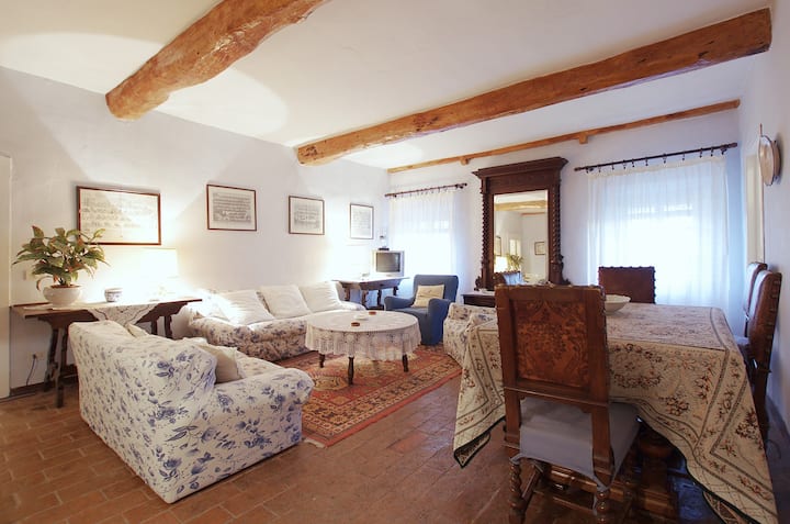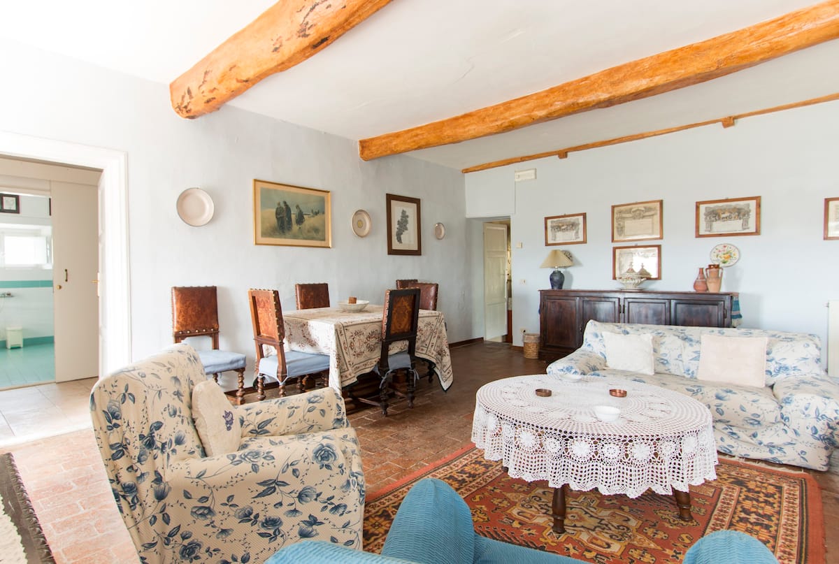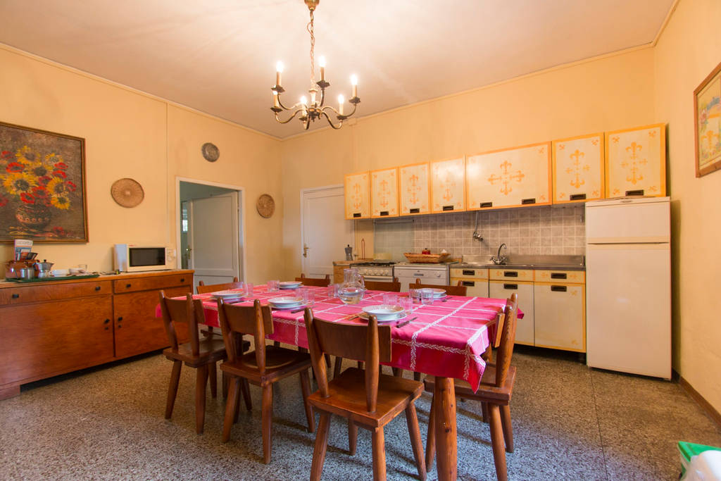 Ingresso con scala (6 gradini o servoscala), cucina- tinello con camino, ampio soggiorno, 1 camera matrimoniale o doppia + 1 letto singolo, 2 camere matrimoniali o doppie, 2 bagni con doccia, 1 bagno con doccia attrezzato per i diversamente abili, ripostiglio.